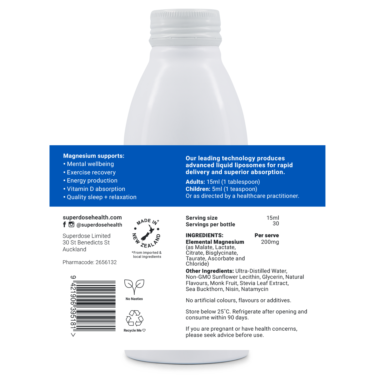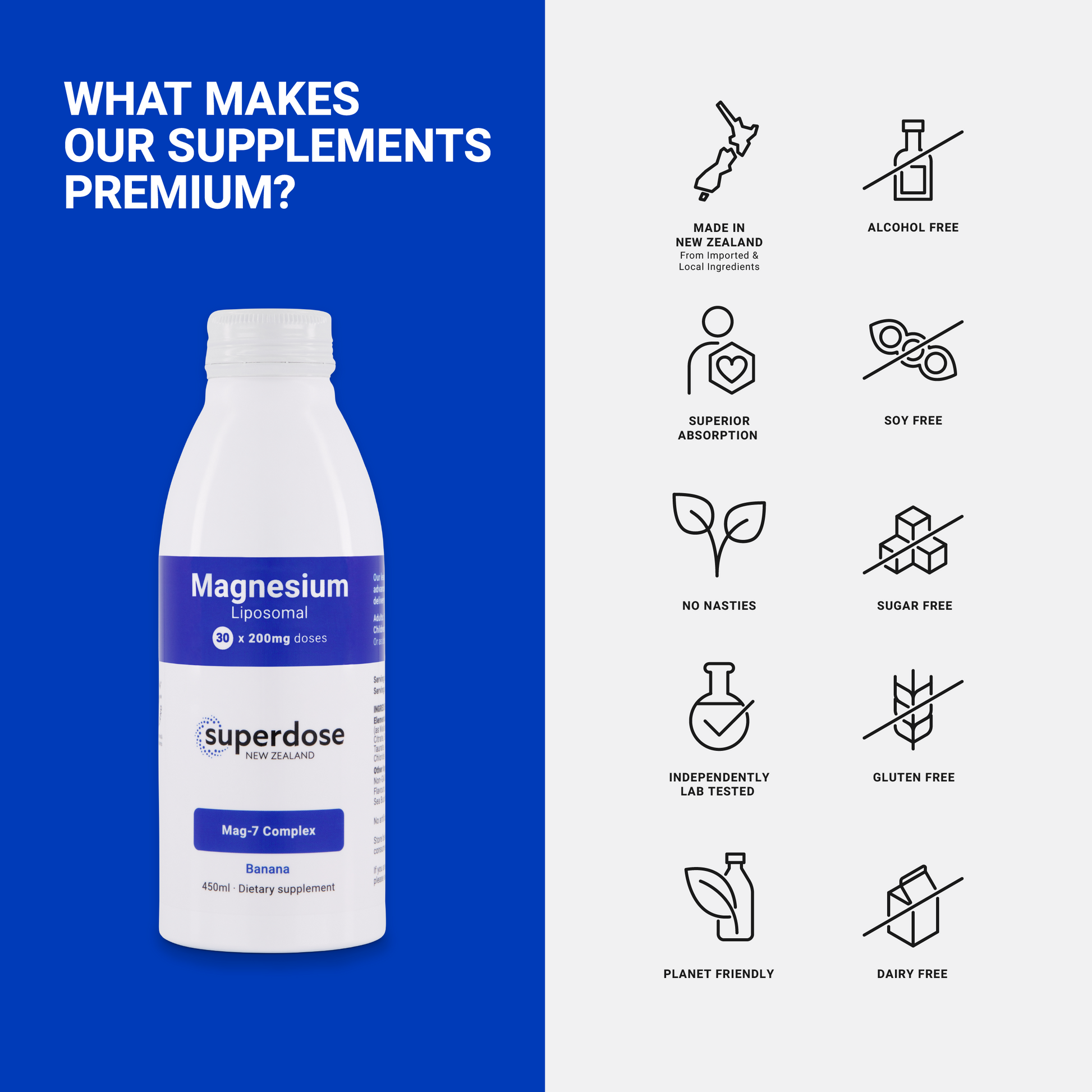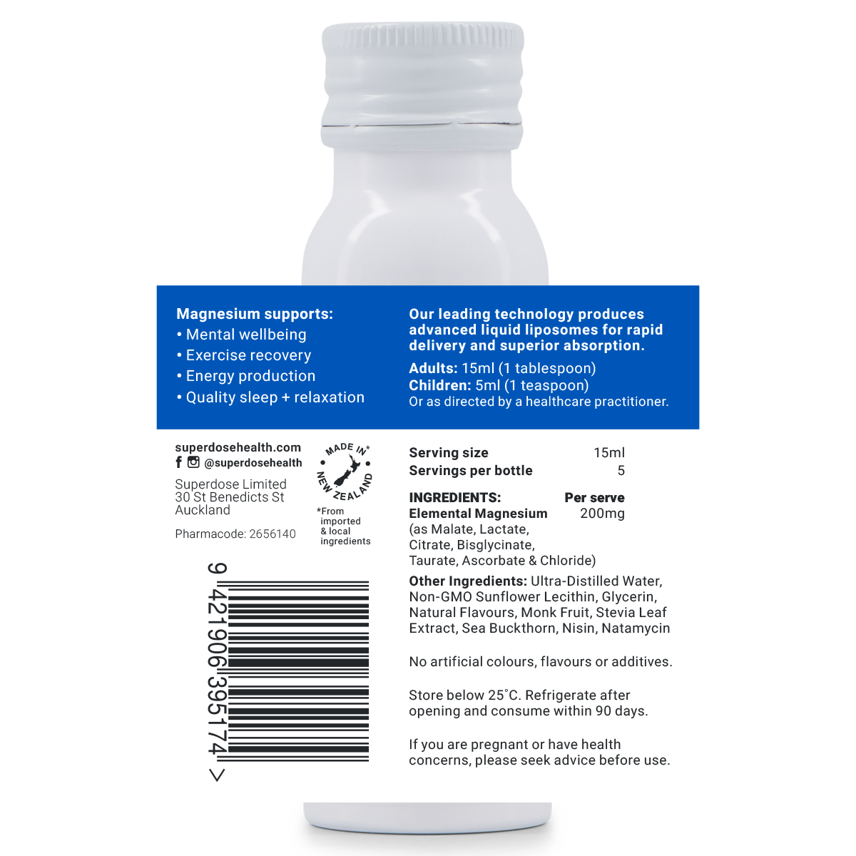 - Proprietary Mag 7 Blend 200mg magnesium (as malate, lactate, citrate, bisglycinate, taurate, ascorbate and chloride)